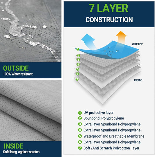 All Weather Waterproof SUV Car Cover, 7-Layer Non-Woven Cotton SUV Covers for Automobiles Car Snow Cover, Full Exterior Covers, Winter Rain Sun, Grey, Size SUV S1 175”-187”