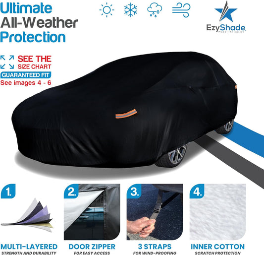 EzyShade 10-Layer Car Cover Waterproof All Weather. See Vehicle Size-Chart for Accurate Fit. Outdoor Full Exterior Covers for Automobiles Sedan Hatch SUV Rain Sun Protection. Size A5 (See SizeChart)