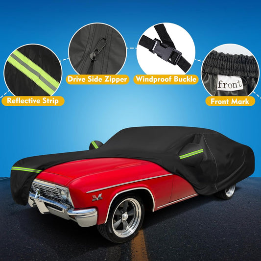 QUNSUNUS Waterproof Car Cover for Chevelle Malibu SS Sedan/Coupe 1964-1972, Outdoor Car Cover with Zipper, Full Exterior Car Covers for Automobiles All Weather with Wind, Sun, UV and Dust Protection