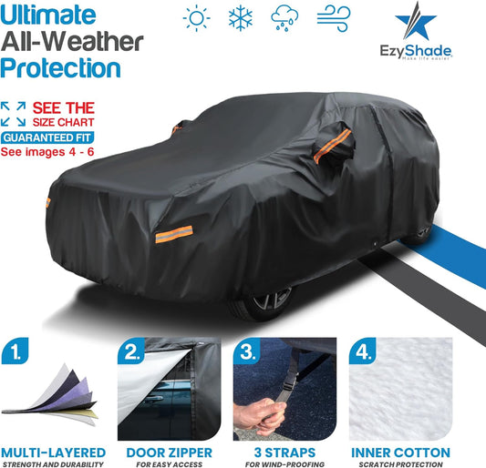 EzyShade 10-Layer SUV Car Cover Waterproof All Weather. See Vehicle Size-Chart for Accurate Fit. Outdoor Full Exterior Covers for Automobiles Heavy Duty Jeep Rav4 CRV. Black, Size S5 (See SizeChart)