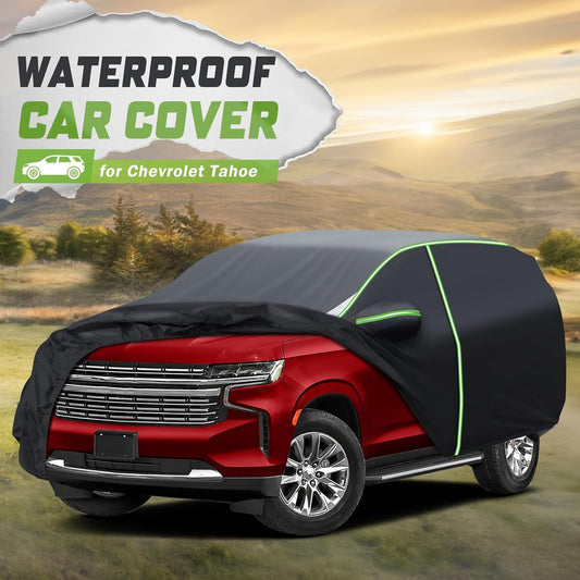 Mixsuper Liner Car Cover for Chevrolet Chevy Tahoe 2007-2026, 7 Layers Waterproof Car Cover Accessories for Tahoe with Zipper Door, Windproof Straps, Reflective Strips, Anti-UV, All Weather