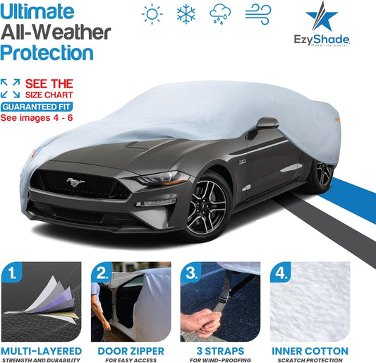 EzyShade 10-Layer Car Cover Waterproof All Weather - See Vehicle Size-Chart - Car Covers for Automobiles & Car Snow Cover - Full Exterior Covers - Winter Rain Sun SUV Sedan. Size A4 (See SizeChart)