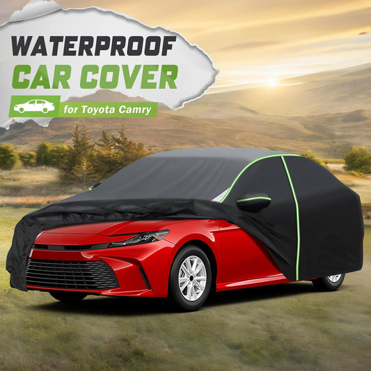 Mixsuper Liner Car Cover for Toyota Camry 1987-2025, 7 Layers Waterproof Car Cover Accessories for Camry with Zipper Door, Windproof Straps, Reflective Strips, Anti-UV, All Weather