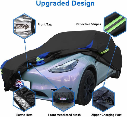 Avecrew Car Cover for Tesla Model Y, Custom Fit Full Exterior Cover with Charging Port and Breathable Ventilation Mesh, Waterproof All Weather Outdoor Rain Snow Sun Protection Cover