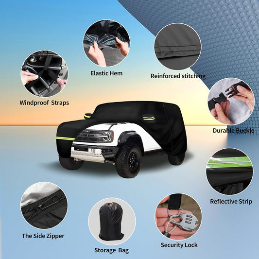Car Covers Weatherproof Max SUV Cover & Warranty Compatible with Ford 2021-2024 Bronco 4 Door- Outdoor Cover Theft Cable Lock SUV Accessories Better Than Waterproof