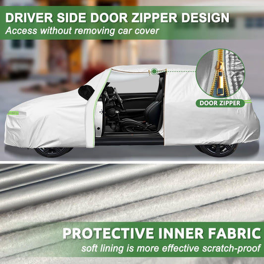 Car Cover for 2014-2025 Mini Cooper/Cooper S/Hardtop/Clubman/Countryman 4 Door,Full Exterior Car Covers for Automobile All Weather Waterproof Heavy Duty,Zipper/Cotton UV Proof Custom fit【210T Taffeta】