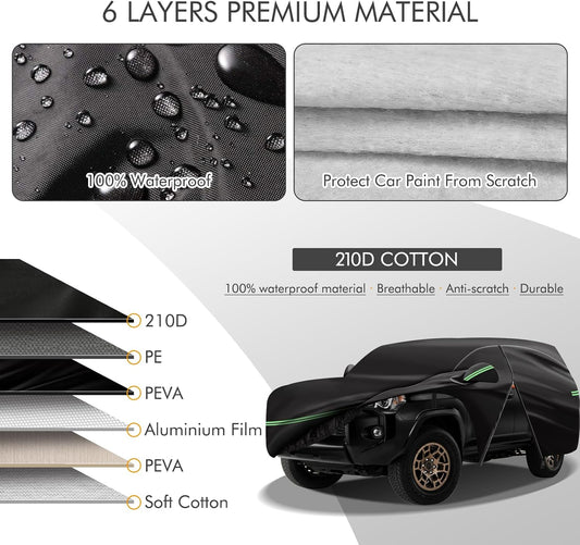 Heavy Duty Waterproof Car Cover for Cars, SUVs, Trucks All Weather, UV Resistant, Dustproof, and Snowproof (2 SUV Car Cover, S2-Fit SUV Length 181-190 inches)