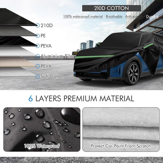Mini Cooper/Cooper S Car Cover 2002-2023 - 210D Outdoor Waterproof UV Protection With Cotton Layer, Zipper Door, Reflective Strip, Storage Bag for 2-Door