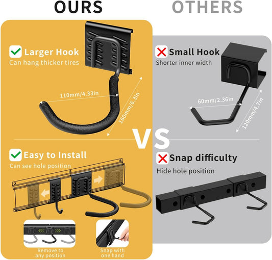 Bike Wall Mount Hanger - Adjustable Horizontal Bicycle Storage Rack for Garage and Home - Metal Hook Holder for Road, Mountain, and Hybrid Bikes