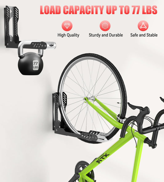 Bike Wall Mount 2 Pack Swivel Bike Rack for Garage, No Heavy Lifting Required Wall Bike Hangers Can Holds up to 77 lbs, Black