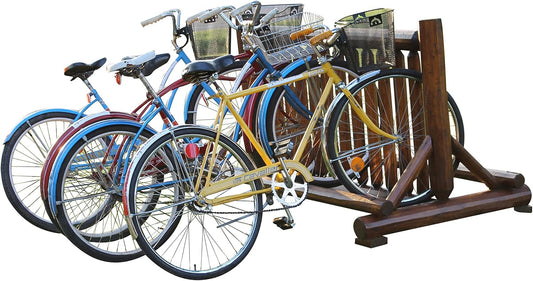 13-Place Bike Log Rack, Outdoor Bike Stand, Freestanding Commercial Bicycle Storage Racks, Standing Rack for Bikes, Bicycle Parking Floor Stand, Ebike Racks, Fat Tire Bikes for Men - Natural