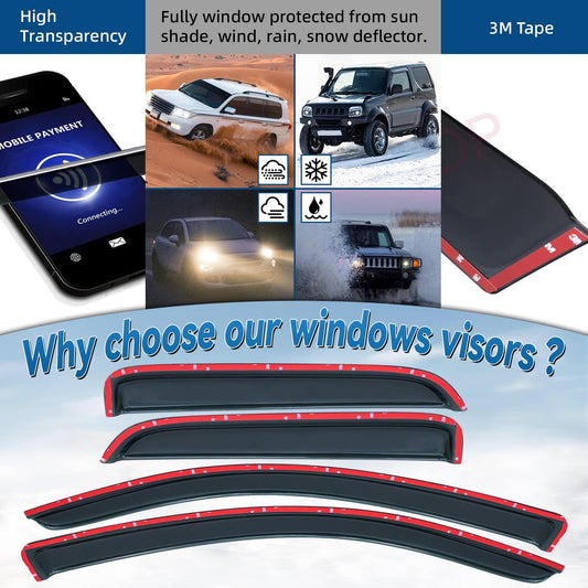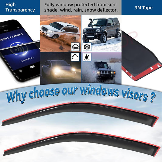 Window Visors Rain Guards for 2019-2025 Dodge Ram 1500 Quad Cab (New Body Style), Window Vent Wind Deflectors Visors Shades for 19-25 Ram 1500 (2 Full-Size Doors, 2 Half-Size Doors)