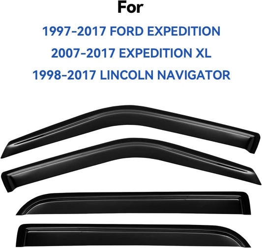 Window Visors Rain Guards for 1997-2017 Ford Expedition, Out-Channel Window Vent Wind Deflectors Visors Shades for 2007-2017 Expedition XL, 1998-2017 Lincoln Navigator