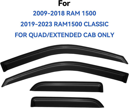 Window Visors Rain Guards for 2009-2018 Dodge Ram 1500 Quad Cab, Out-Channel Window Vent Wind Deflectors Visors Shades for 2019-2023 Ram 1500 Extended Cab Classic Model
