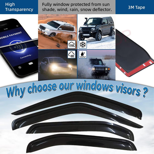 Side Window Deflector Visor fit for 2005-2022 Nissan Frontier Crew cab (with 4 Full Size Doors),Outside Mount Tape-on Shatterproof Rain Guard,4pcs Dark Smoke Nice Looking Window Shades 94407