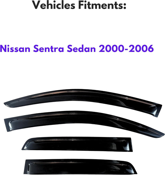 KPY Window Visor Compatible with Nissan Sentra Sedan 2000-2006, 4PC Rain Guard Side Window Vent Deflectors Tape-On Style, 2000 2001 2002 2003 2004 2005 2006