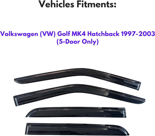 KPY Window Visor Compatible with Volkswagen (VW) Golf MK4 Hatchback 1997-2003, 4PC Rain Guard Side Window Vent Deflectors Tape-On Mugen Style, 1997 1998 1999 2000 2001 2002 2003