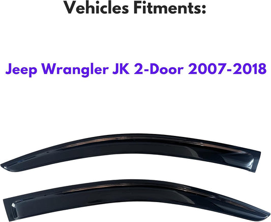 KPY Window Visors Compatible with Jeep Wrangler JK 2-Door 2007-2018, 2PC Rain Guard Side Vent Deflectors Tape-On Style, 2007 2008 2009 2010 2011 2012 2013 2014 2015 2016 2017 2018