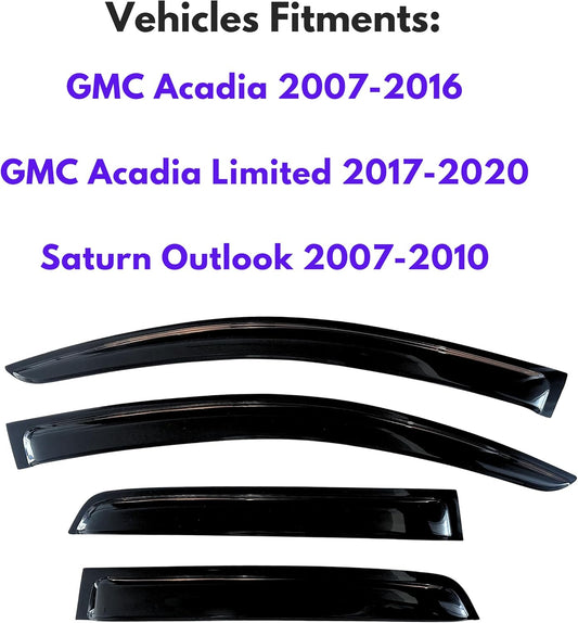 KPY Window Visor Compatible with GMC Acadia 2007-2016, Acadia Limited 2017-2020, Saturn Outlook 2007-2010, 4PC Rain Guard Side Window Vent Deflectors Tape-On Style, 2011 2012 2013 2014 2015 2018 2019