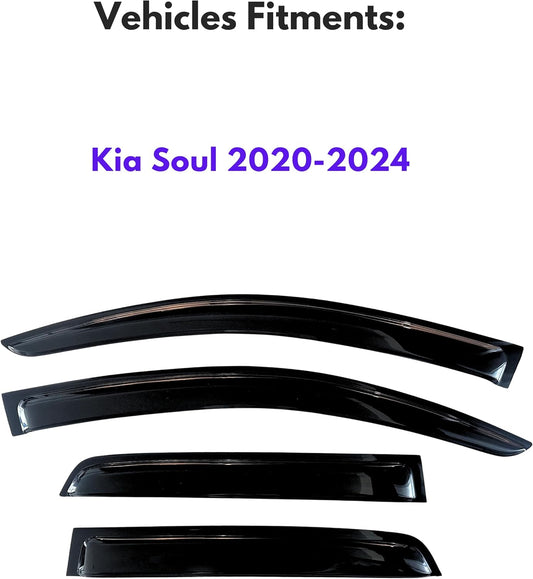 KPY Window Visor Compatible with Kia Soul 2020-2024, 4PC Rain Guard Side Window Vent Deflectors Tape-On Style, 2020 2021 2022 2023 2024