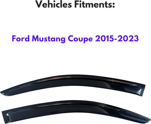 KPY Window Visor Compatible with Ford Mustang Coupe 2015-2023, 2PC Rain Guard Side Window Vent Deflectors Tape-On Style, 2015 2016 2017 2018 2019 2020 2021 2022 2023