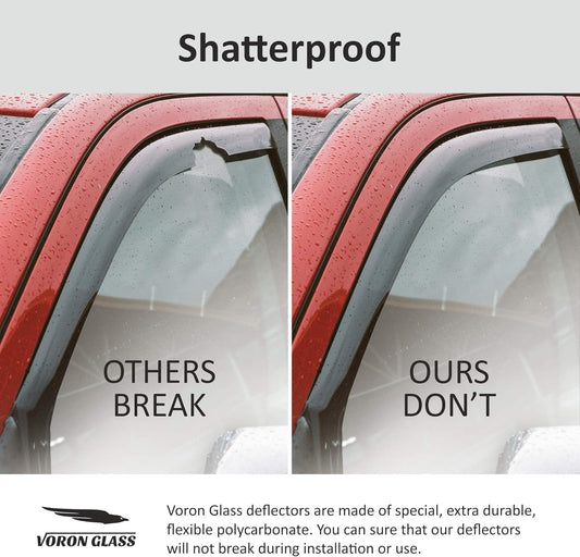 Voron Glass in-Channel Extra Durable Rain Guards for Ford F250 to F550 Super Duty 1999-2016 SuperCrew, Window Deflectors, Vent Window Visors, 4 Pieces - 200434