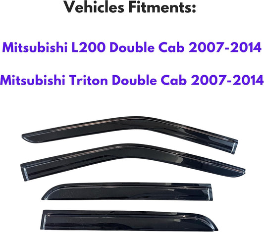 KPY Window Visor Compatible with Mitsubishi L200 & Triton Double Cab 2007-2014, 4PC Rain Guard Side Window Vent Deflectors Tape-On Mugen Style, 2007 2008 2009 2010 2011 2012 2013 2014