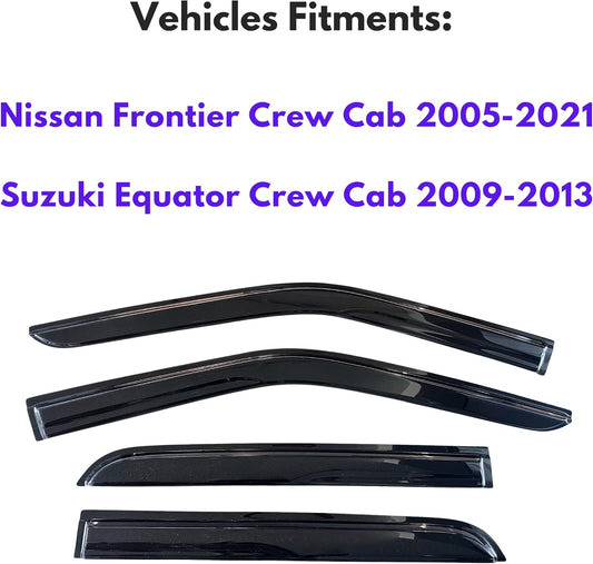KPY Window Visor Compatible with Nissan Frontier Crew Cab 2005-2021 & Suzuki Equator Crew Cab 2009-2013, Rain Guard Side Vent Deflectors Tape-On, 2007 2008 2010 2011 2012 2014 2015 2016 2017 2018 2019