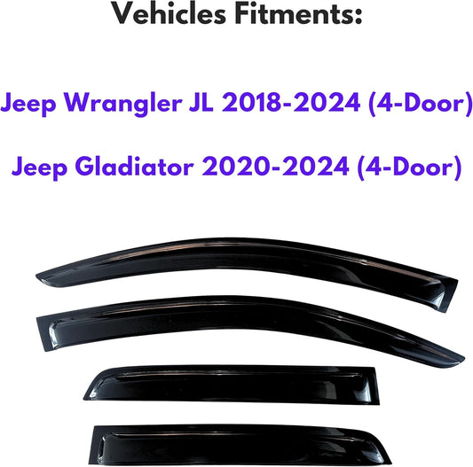 KPY Window Visor Compatible with 2018-2024 Jeep Wrangler JL Unlimited 4-Door & Gladiator 4-Door 2020-2024, 4PC Rain Guard Side Window Vent Deflectors Tape-On Style, 2018 2019 2020 2021 2022 2023 2024