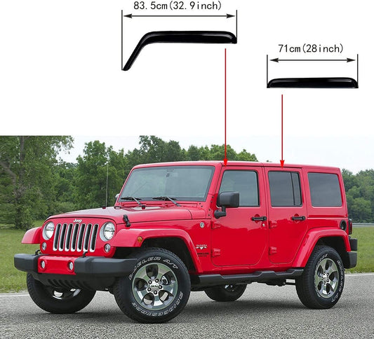 Side Window Visor Wind Vent Deflectors,2pcs Outside Mount Tape-on Shatterproof Dark Smoke Rain Guards Shades fit for 2007-2018 Jeep Wrangler (JK) 2-Door Model 92328