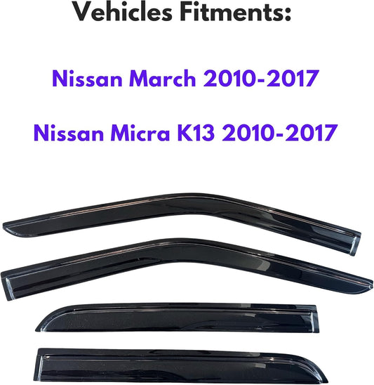 KPY Window Visor Compatible with Nissan March 2010-2017, Nissan Micra K13 2010-2017, 4PC Rain Guard Side Window Vent Deflectors Tape-On Mugen Style, 2010 2011 2012 2013 2014 2015 2016 2017