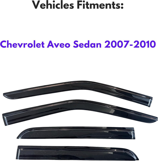 KPY Window Visor Compatible with Chevrolet Chevy Aveo Sedan 2007-2010, 4PC Rain Guard Side Window Vent Deflectors Tape-On Mugen Style, 2007 2008 2009 2010
