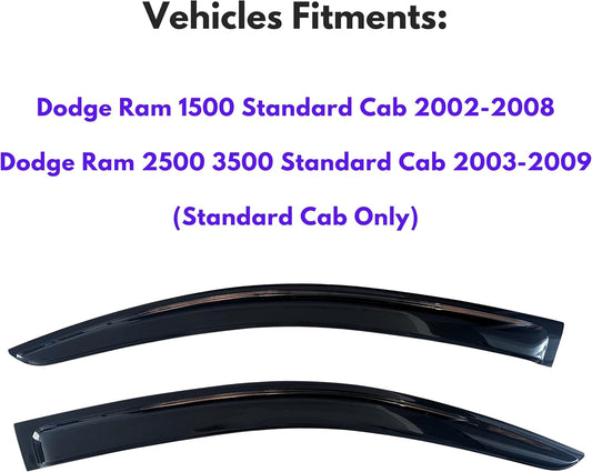 KPY Window Rain Guards Vent Visors Shades for 2002-2008 Dodge Ram 1500 Standard Cab, Window Wind Deflectors Shield for 2003-2009 Ram 2500 3500, 2003 2004 2005 2006 2007 2008 2009 (Standard Cab Only)