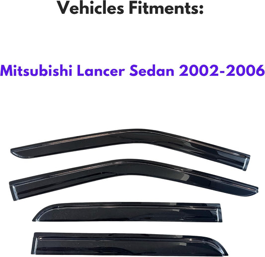 KPY Window Visor Compatible with Mitsubishi Lancer Sedan 2002-2006, 4PC Rain Guard Side Window Vent Deflectors Tape-On Mugen Style, 2002 2003 2004 2005 2006