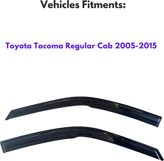 KPY Window Visor Compatible with 2005-2015 Toyota Tacoma Regular Cab, 2PC Rain Guard Vent Deflectors Tape-On, 2005 2006 2007 2008 2009 2010 2011 2012 2013 2014 2015 (Standard/Regular Cab Only)