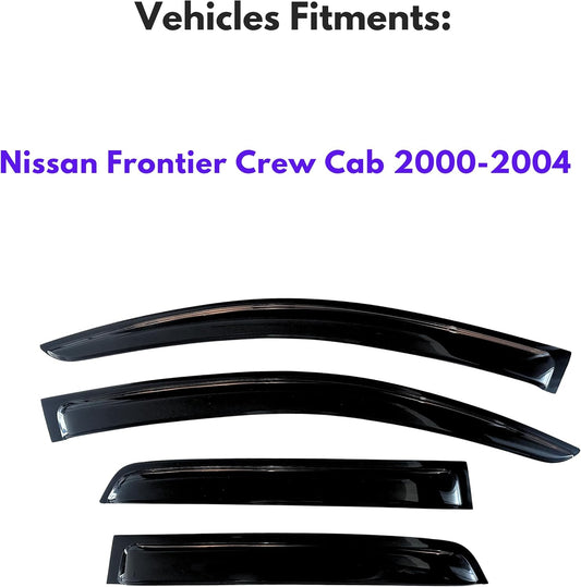 KPY Window Visor Compatible with Nissan Frontier Crew Cab 2000-2004, 4PC Rain Guard Side Window Vent Deflectors Tape-On Style, 2000 2001 2002 2003 2004