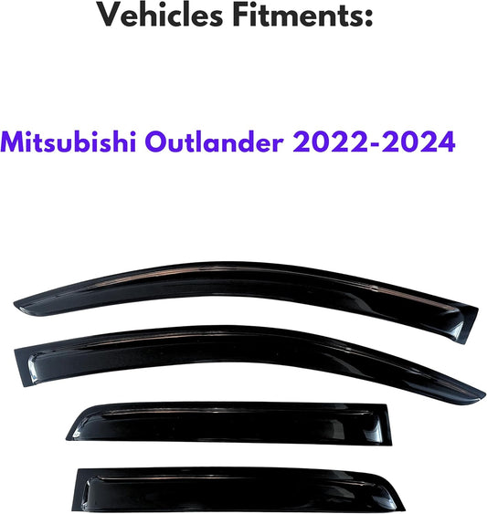 KPY Window Visor Compatible with Mitsubishi Outlander 2022-2024, 4PC Rain Guard Side Window Vent Deflectors Tape-On Style, 2022 2023 2024