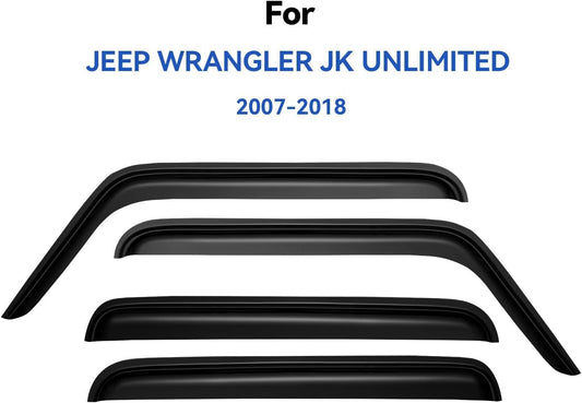 Window Visors Rain Guards Shield for 2007-2018 Jeep Wrangler, Out-Channel Window Vent Wind Deflectors Visors Shades for 07-18 Wrangler JK