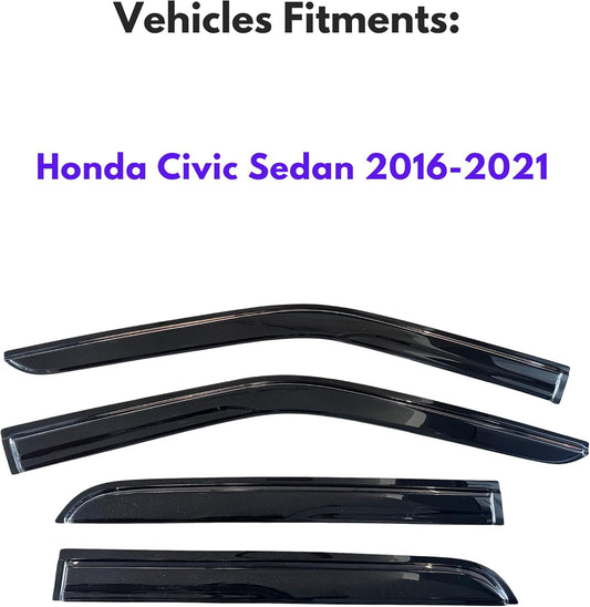 KPY Window Visor Compatible with Honda Civic Sedan 2016-2021, 4PC Rain Guard Side Window Vent Deflectors Tape-On Mugen Style, 2016 2017 2018 2019 2020 2021