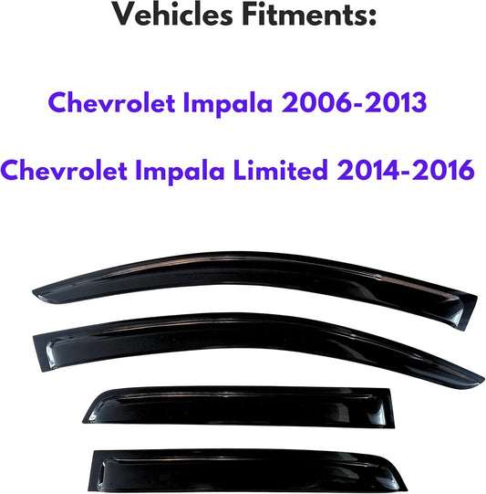 KPY Window Visor Compatible with Chevrolet Chevy Impala 2006-2013 & Impala Limited 2014-2016, 4PC Rain Guard Side Vent Deflectors Tape-On Style, 2006 2007 2008 2009 2010 2011 2012 2013 2014 2015 2016