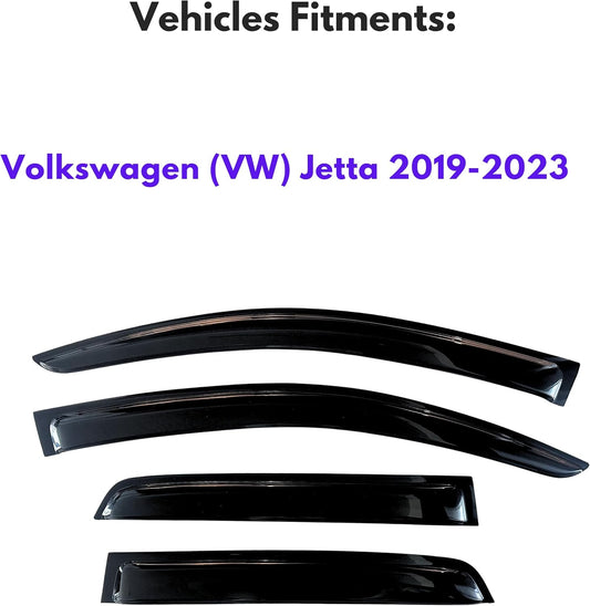 KPY Window Visor Compatible with Volkswagen (VW) Jetta 2019-2023, 4PC Rain Guard Side Window Vent Deflectors Tape-On Style, 2019 2020 2021 2022 2023
