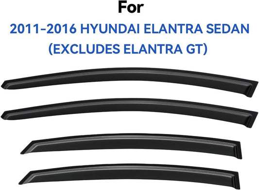 Window Visors Rain Guards for 2011-2016 Hyundai Elantra Sedan, Out-Channel Window Vent Wind Deflectors Visors Shades for 11-16 Elantra (EXCLUDES Elantra GT)