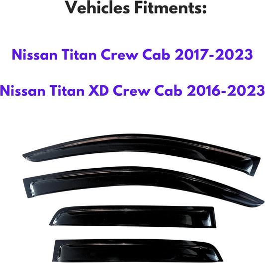 KPY Window Visor Compatible with 2017-2023 Nissan Titan Crew Cab & 2016-2023 Nissan Titan XD Crew Cab, 4PC Rain Guard Side Window Vent Deflectors Tape-On Style, 2016 2017 2018 2019 2020 2021 2022 2023