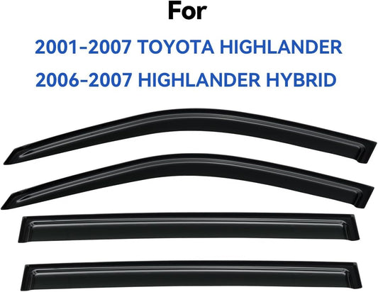 Window Visors Rain Guards Shield for 2001-2007 Toyota Highlander, Out-Channel Window Vent Wind Deflectors Visors Shades for 06 07 Highlander Hybrid