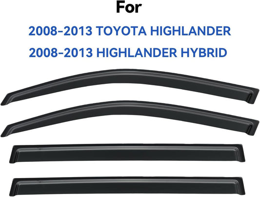 Window Visors Rain Guards Shield for 2008-2013 Toyota Highlander, Out-Channel Window Vent Wind Deflectors Visors Shades for 08-13 Highlander Hybrid