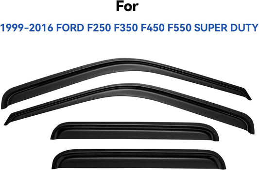 Window Visors Rain Guards for 1999-2016 Ford F250 F350 F450 F550 Super Duty, Out-Channel Window Vent Wind Deflectors Visors Shades for 99-16 F-250 F-350 F-450 F-550 SuperCrew Cab