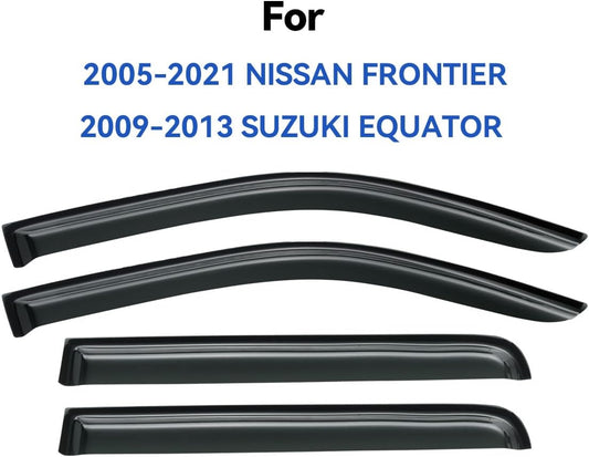 Window Visors Rain Guards Shield for 2005-2021 Nissan Frontier Crew Cab, Out-Channel Window Vent Wind Deflectors Visors Shades for 2009-2013 Suzuki Equator Crew Cab