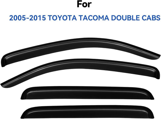 Window Visors Rain Guards for 2005-2015 Toyota Tacoma Double Cab, Out-Channel Window Vent Wind Deflectors Visors Shades for 05-15 Tacoma