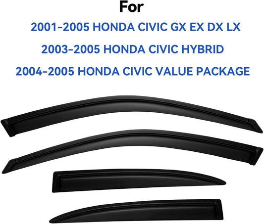 Window Visors Rain Guards for Honda Civic 2001 2002 2003 2004 2005, Out-Channel Window Vent Wind Deflectors Visors Shades for 01-05 Civic 4-Door Sedan