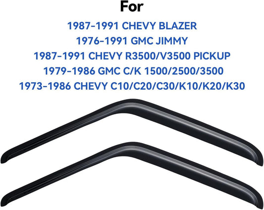 Window Visors Rain Guards for 1987-1991 Chevy Blazer, Out-Channel Window Vent Wind Deflectors Visors Shades for 1973-1991 Chevy GMC C/K/R-Series Pickup/Suburban